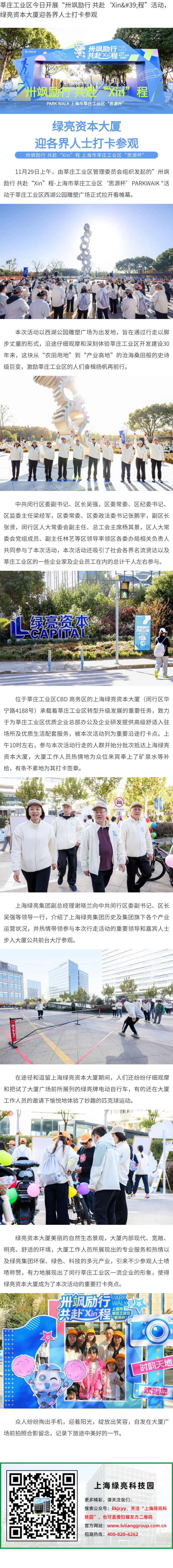 莘庄工业区今日开展“卅飒励行 共赴‘Xin'程”活动,绿亮资本大厦迎各界人士打卡参观