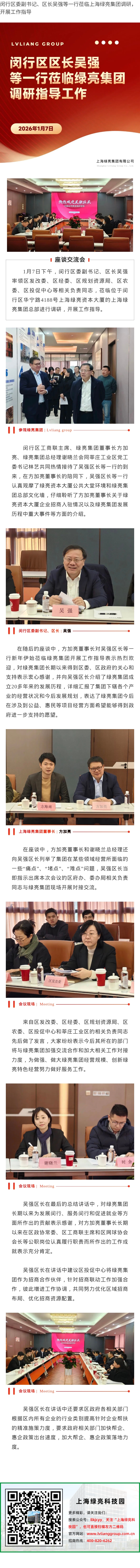 闵行区委副书记、区长吴强等一行莅临上海绿亮集团调研,开展工作指导
