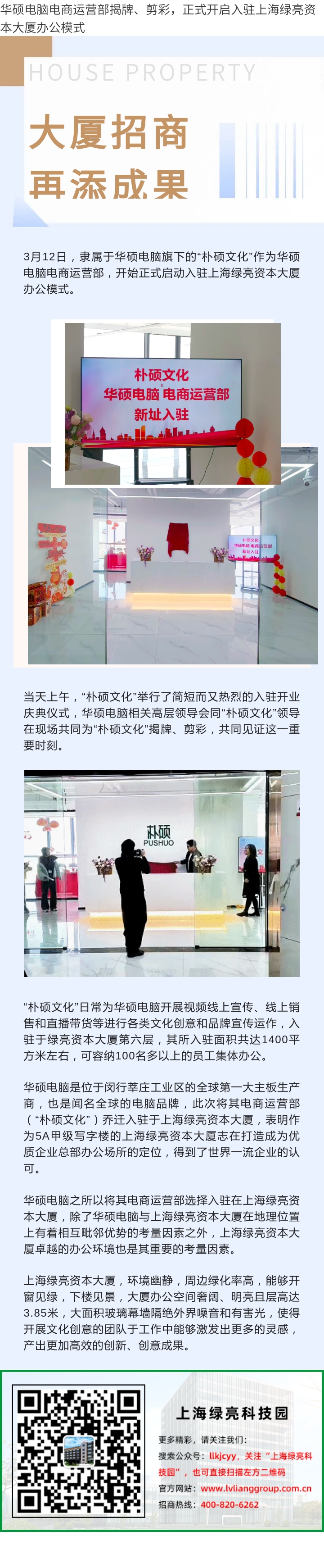 华硕电脑电商运营部揭牌、剪彩,正式开启入驻上海绿亮资本大厦办公模式