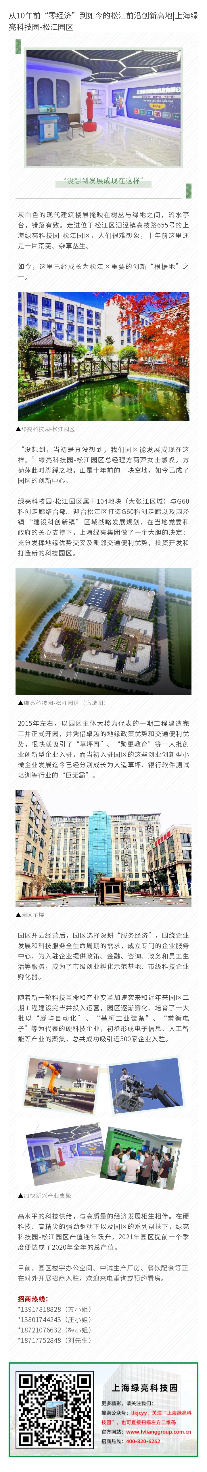 从10年前“零经济”到如今的松江前沿创新高地|上海绿亮科技园-松江园区