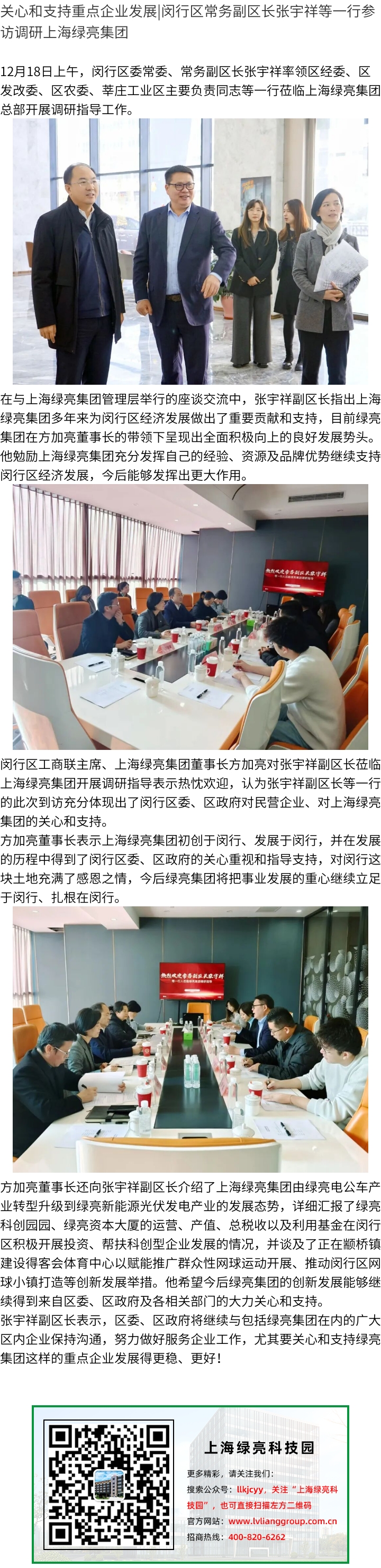 关心和支持重点企业发展|闵行区常务副区长张宇祥等一行参访调研上海绿亮集团